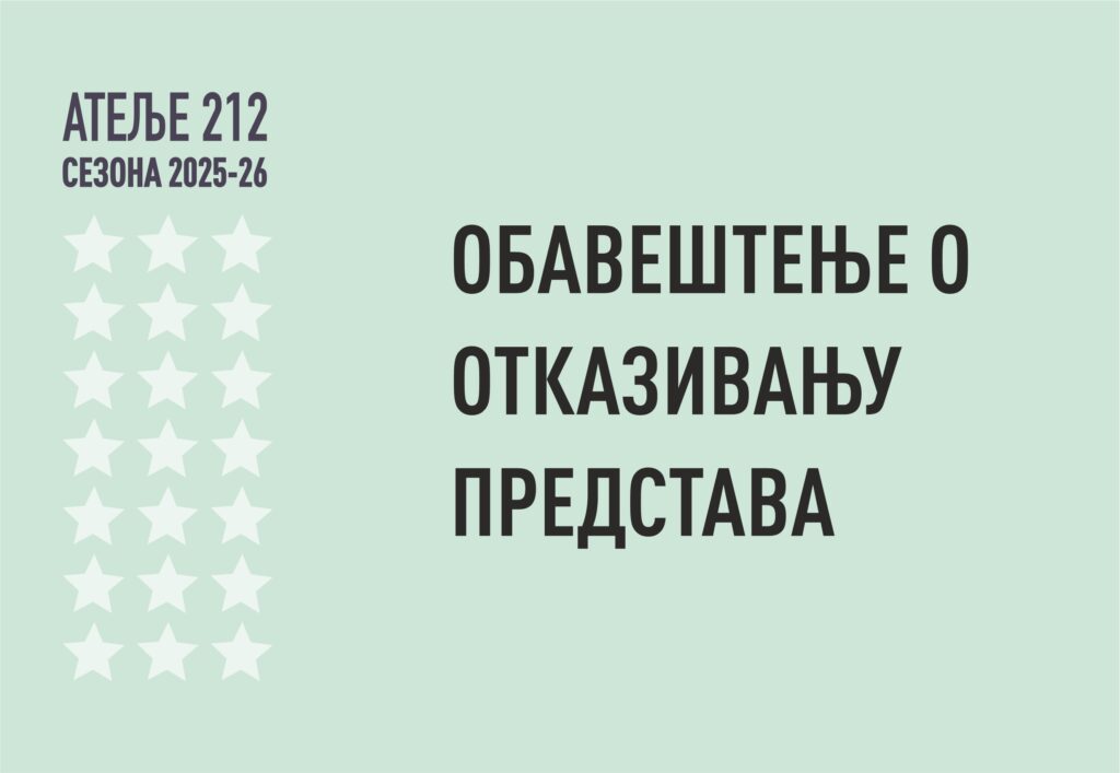 За све информације, обратите се билетарници Позоришта Атеље 212: atelje212bilet@atelje212.rs